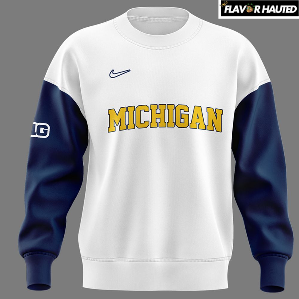 Beyond its bold aesthetics, the sweatshirt is designed with comfort and durability in mind. The soft, high-quality fabric ensures warmth without bulk, making it a perfect layering piece for cooler seasons. The ribbed cuffs and crew neckline give it a tailored yet relaxed fit, enhancing both style and functionality. This limited-edition release makes it even more exclusive, turning it into a coveted item for Michigan fans who want to celebrate their team in a fashion-forward way. Whether paired with jeans for a casual look or layered over athletic gear for a sporty edge, this sweatshirt is a standout addition to any Michigan supporter’s wardrobe.